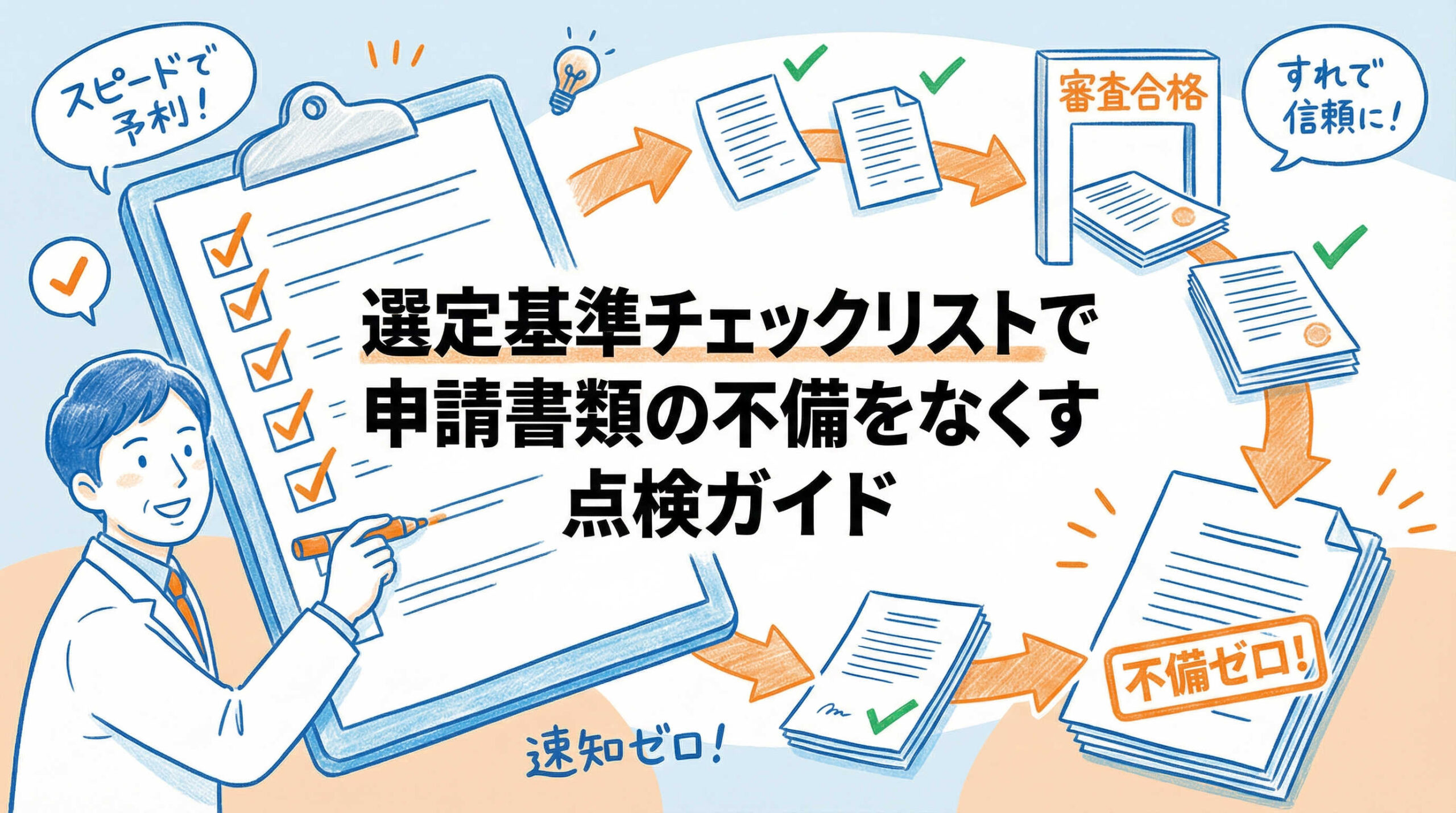 選定基準チェックリストを用いて事前に項目を一つひとつ潰しておくことで、こうした「防げるミス」による差し戻しを回避できます。特に、記載漏れや添付資料との不整合といった初歩的なミスは、チェックリストでの確認で確実に防ぐことができるでしょう。審査委員の心証を良くし、本質的な議論に時間を割くためにも、完成度の高い書類提出が望まれます。
